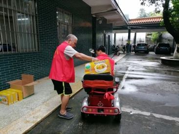 6月13日上午9点,轮友义工们准时到达社区集中,提取10份捐赠物资,并通过电动轮椅进行入户派送。