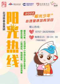 为了帮助北滘镇广大儿童青少年缓解情绪、解决心理困扰,扩大心理服务求助渠道,北滘镇“阳光少年”心理健康培育项目——“守护心灵,关爱同行”阳光助苗计划在北滘教育办、北滘慈善会支持下于12月4日正式开通北滘慈善会惠妍阳光热线!
