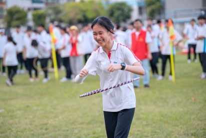 这是“负重向前冲”环节后,学生和老师们分享的感受。尽管一开始,学生们都为怎样带着呼啦圈完成挑战而烦恼。但每当有人尝试挑战后,其他的学生们总在一旁呐喊助威。过程中,虽有困难,但也有欢声笑语。同时,的不少班级中的老师更是加入到的挑战中,与高三学生们肩并肩站在同一阵线。